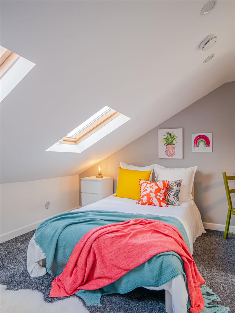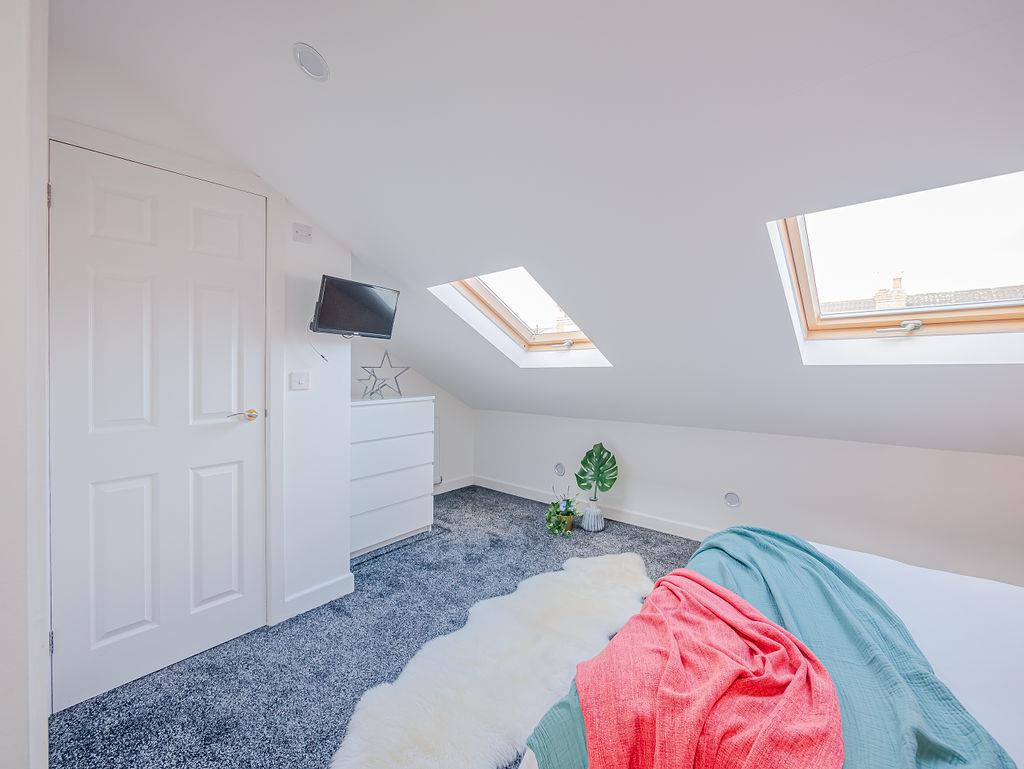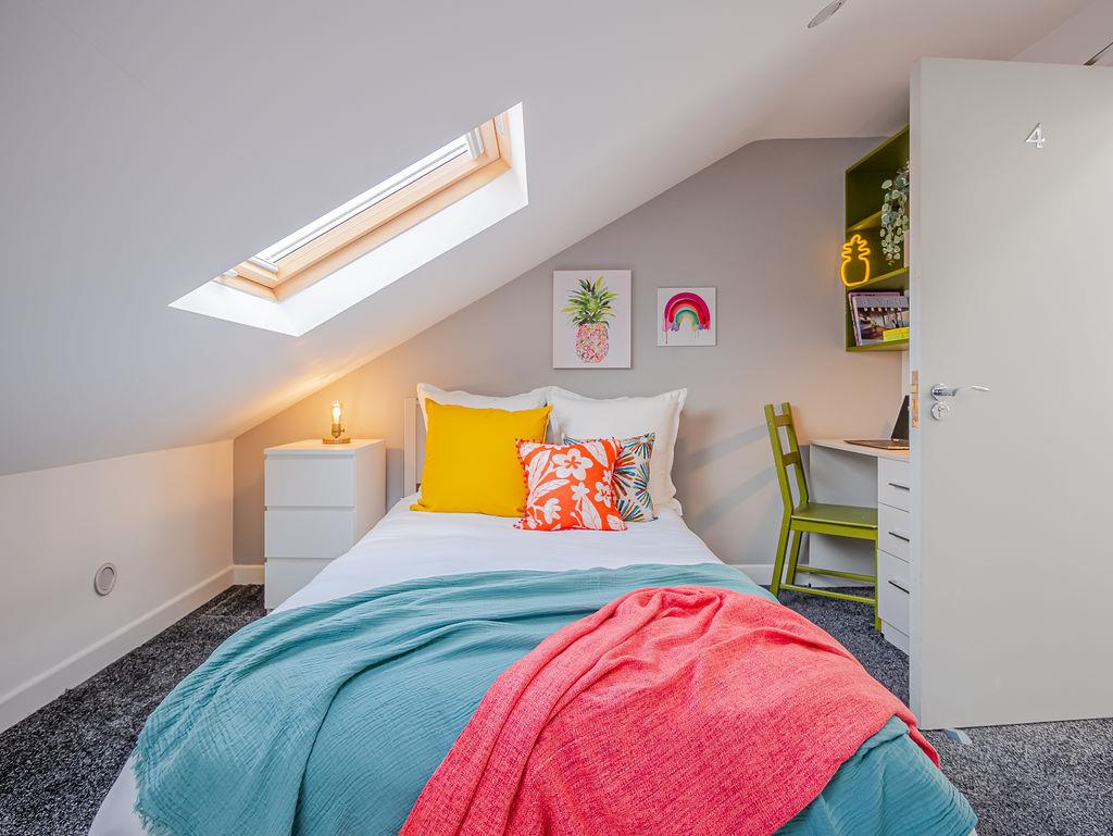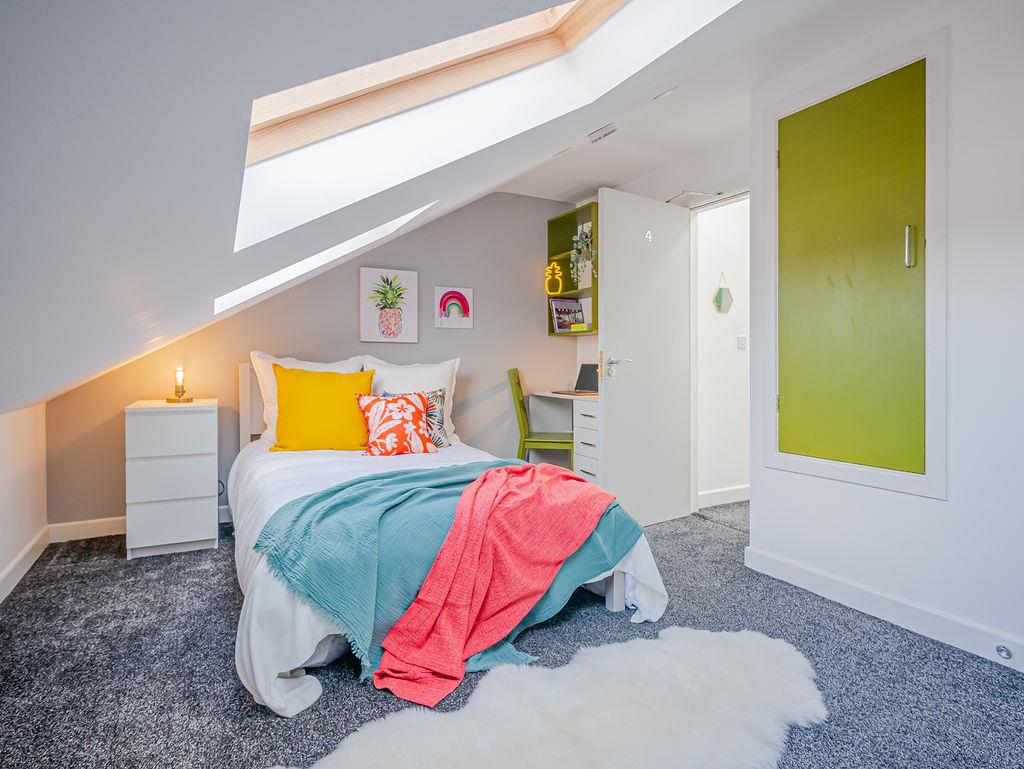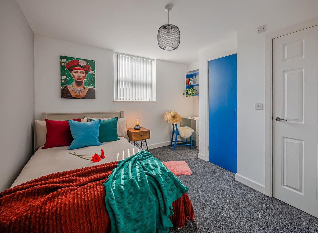* The spacious double bedroom contains an en-suite shower room, double bed, wardrobe, and study area including a desk/chair & wall mounted TV