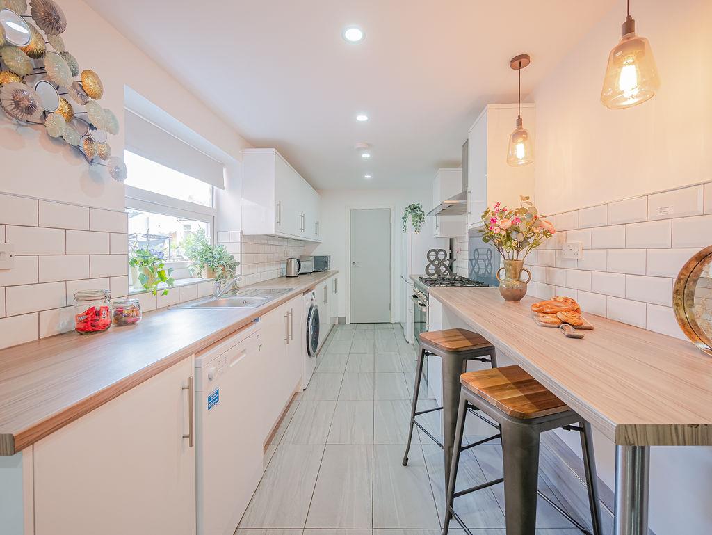 * Open plan kitchen / living area with all necessary appliances including a range cooker & dishwasher, breakfast bar & plenty of storage space
