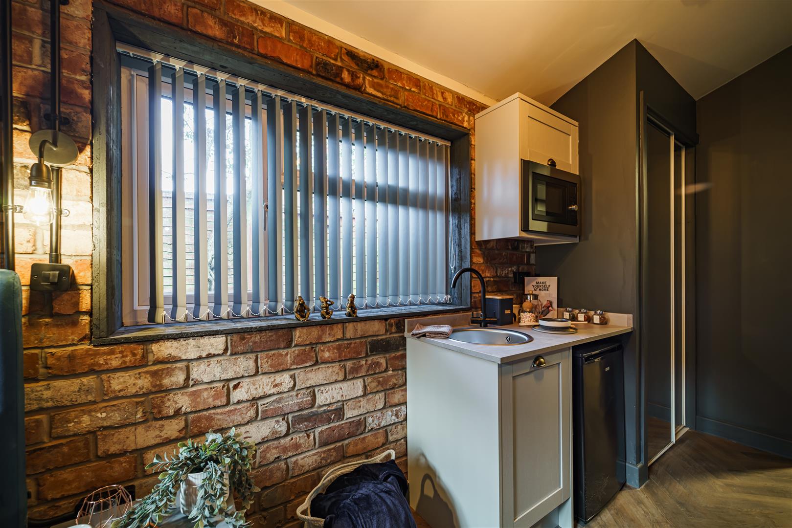 *Compact Kitchenette: Microwave, Sink, Under-Counter Fridge