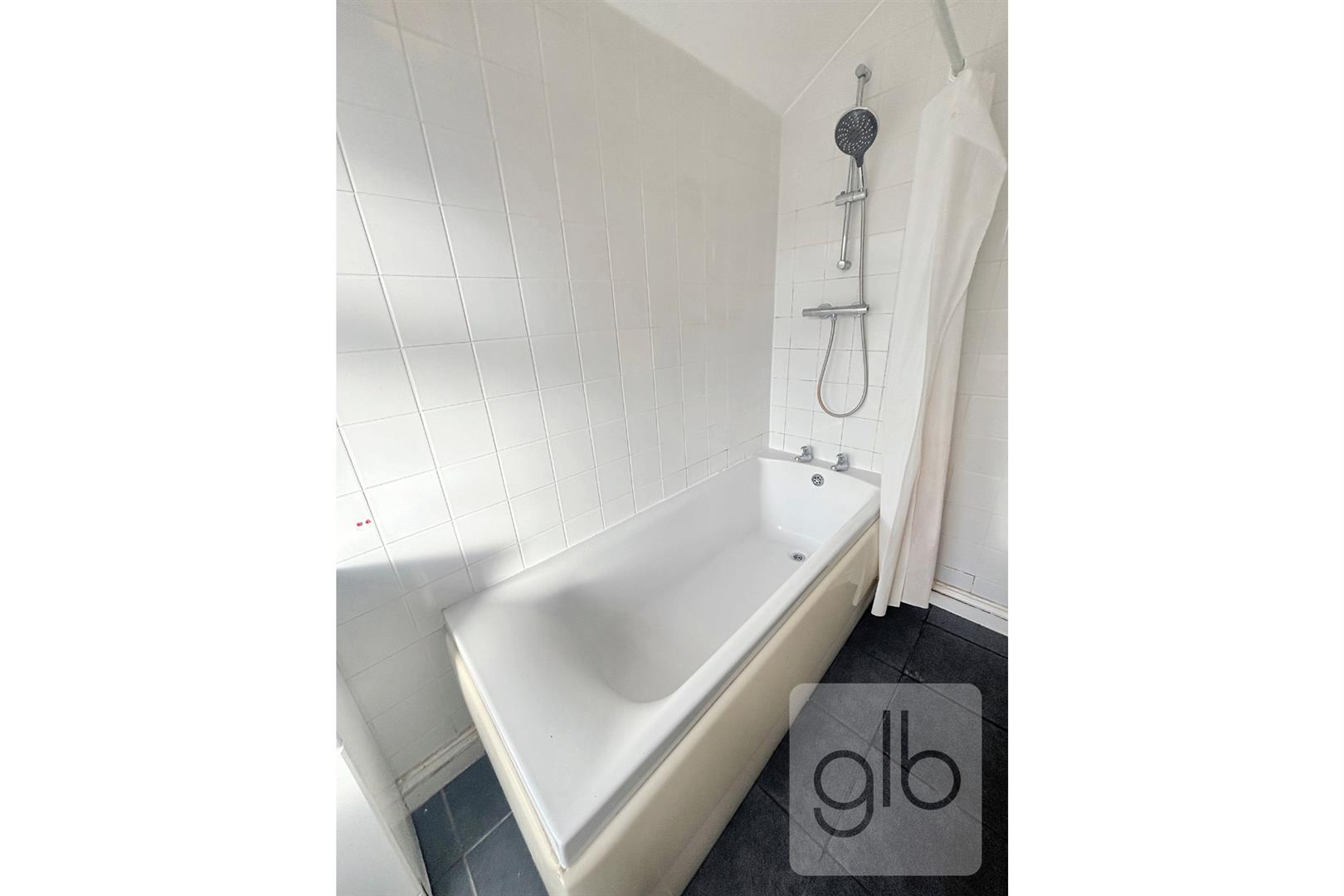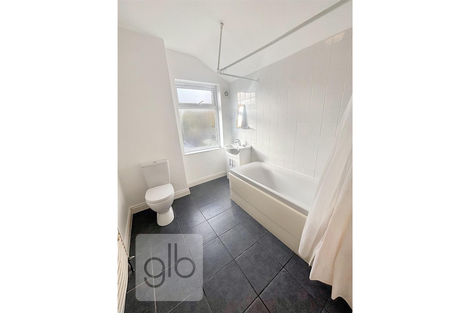 Stylish first-floor bathroom with shower over bath