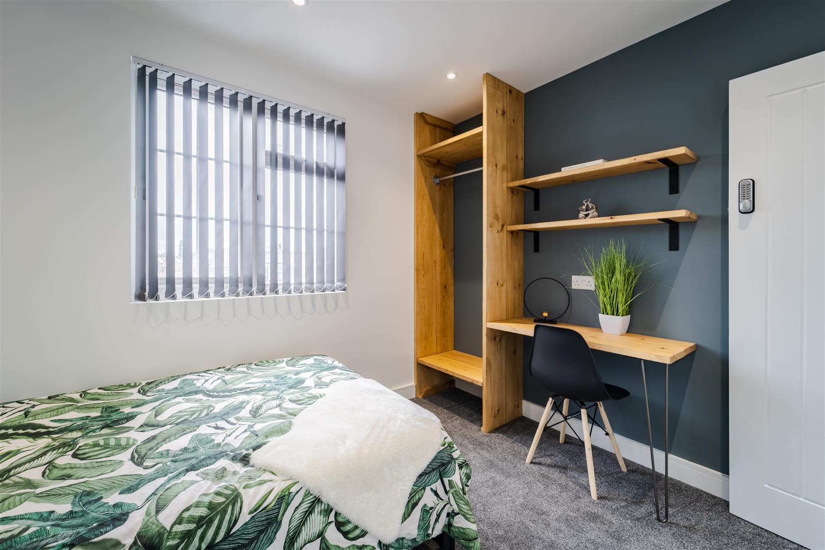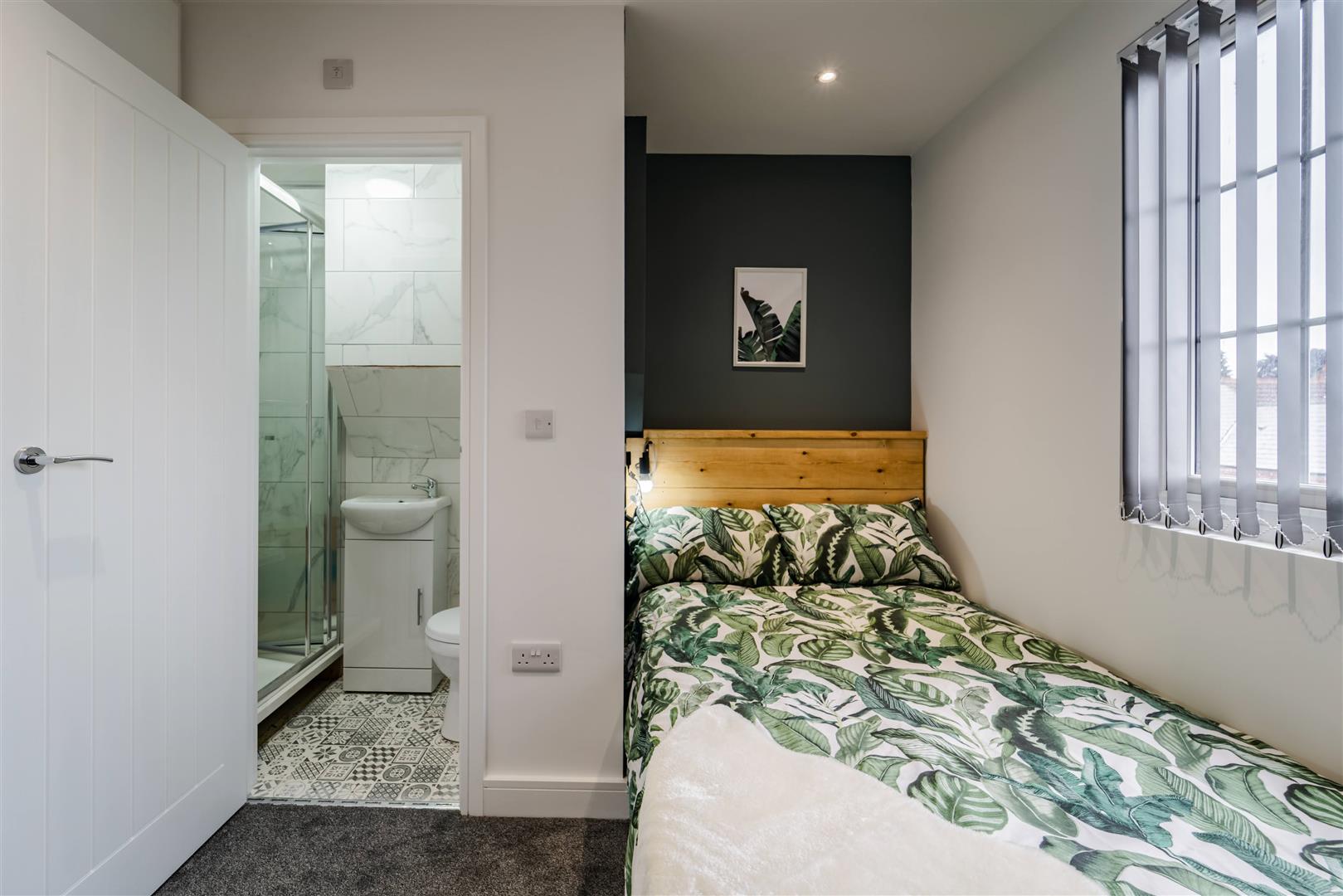 * Each bedroom comes with an en-suite shower room, double bed, clothes rail, study area including a desk/chair, shelving & a TV.