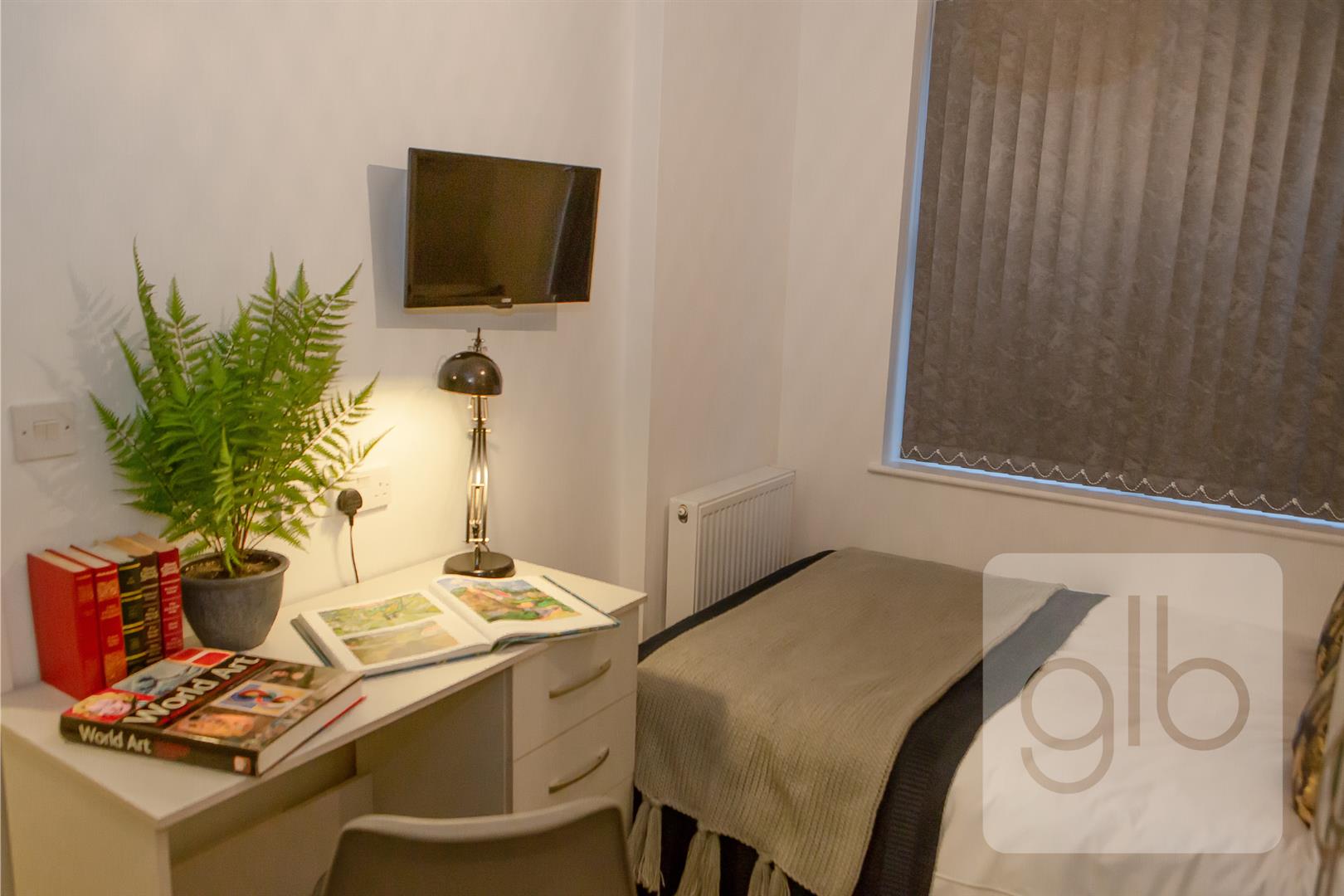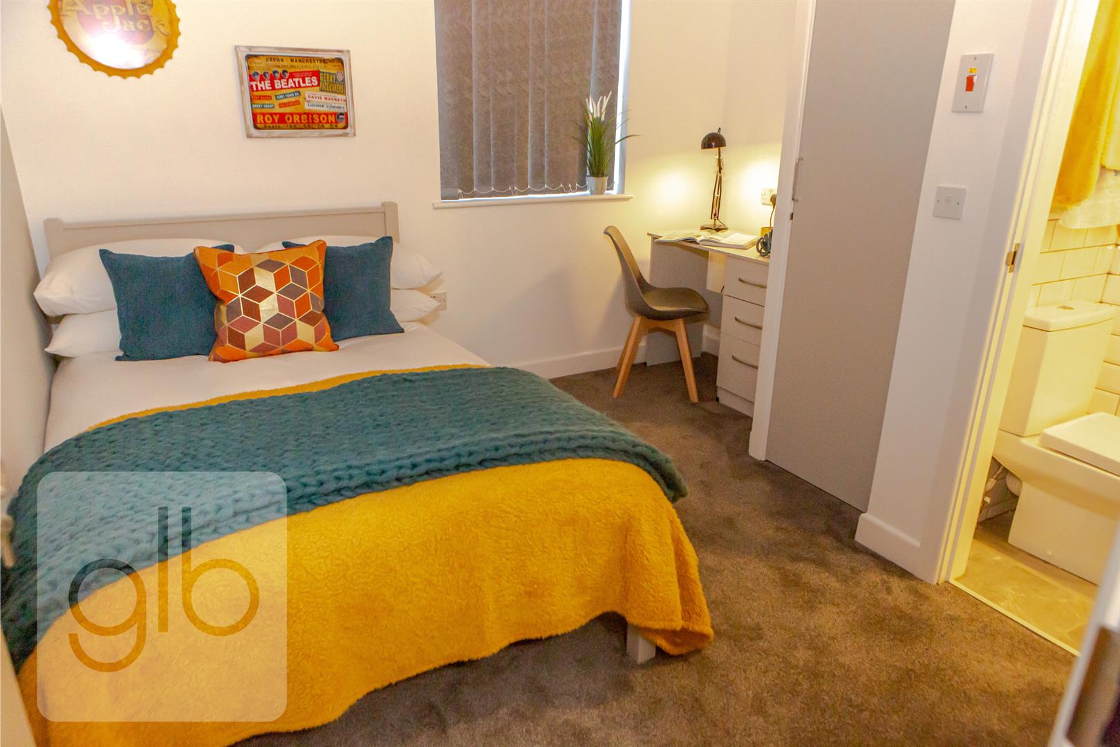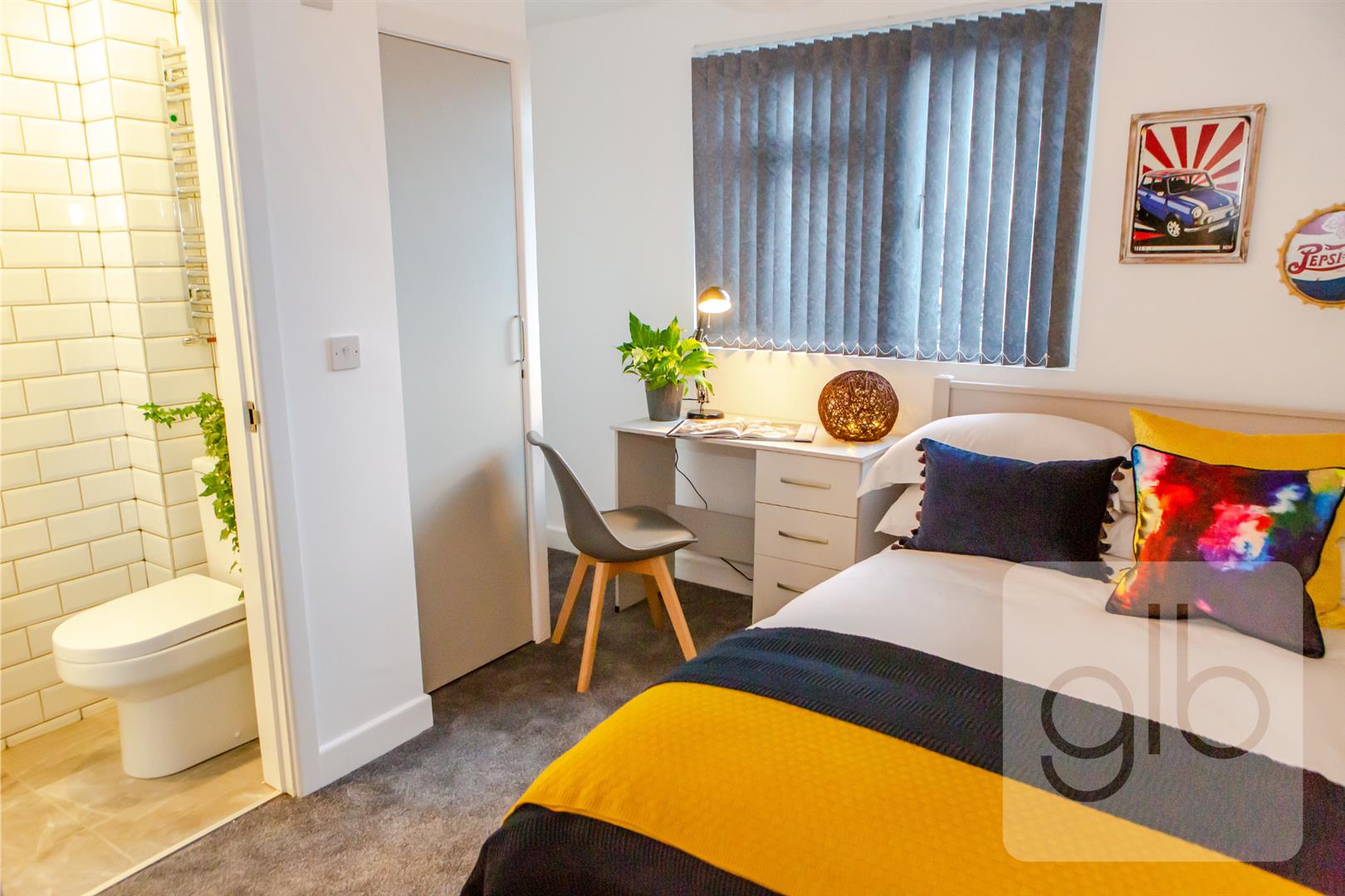 * The bedrooms provide the perfect space for tenants providing them with the privacy of an en-suite shower room, double bedroom, study/work area with desk/chair, shelving, built in closet and TV.
