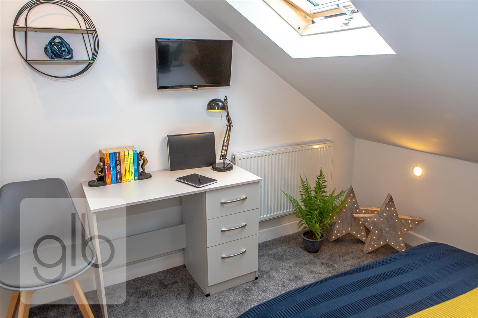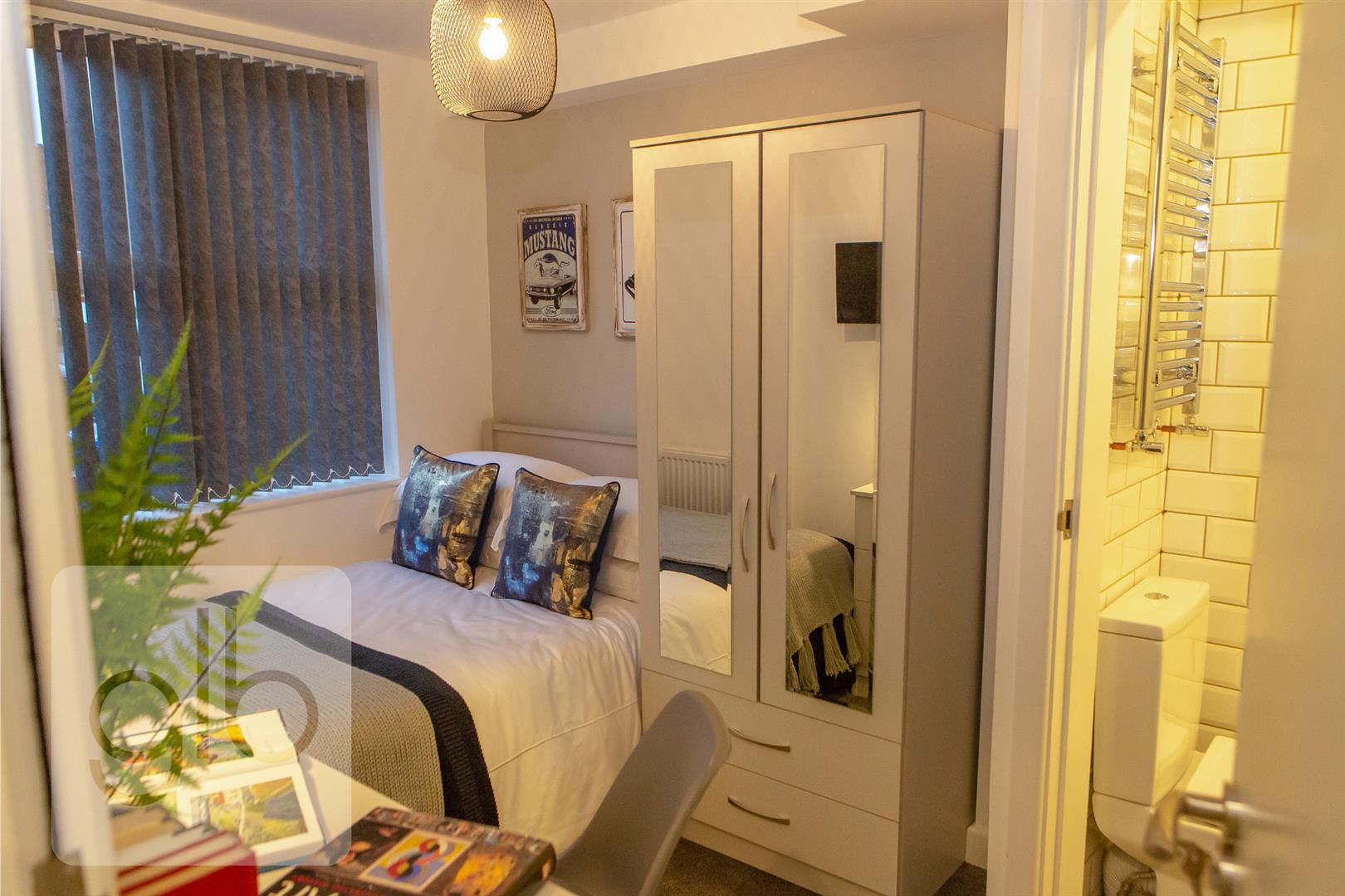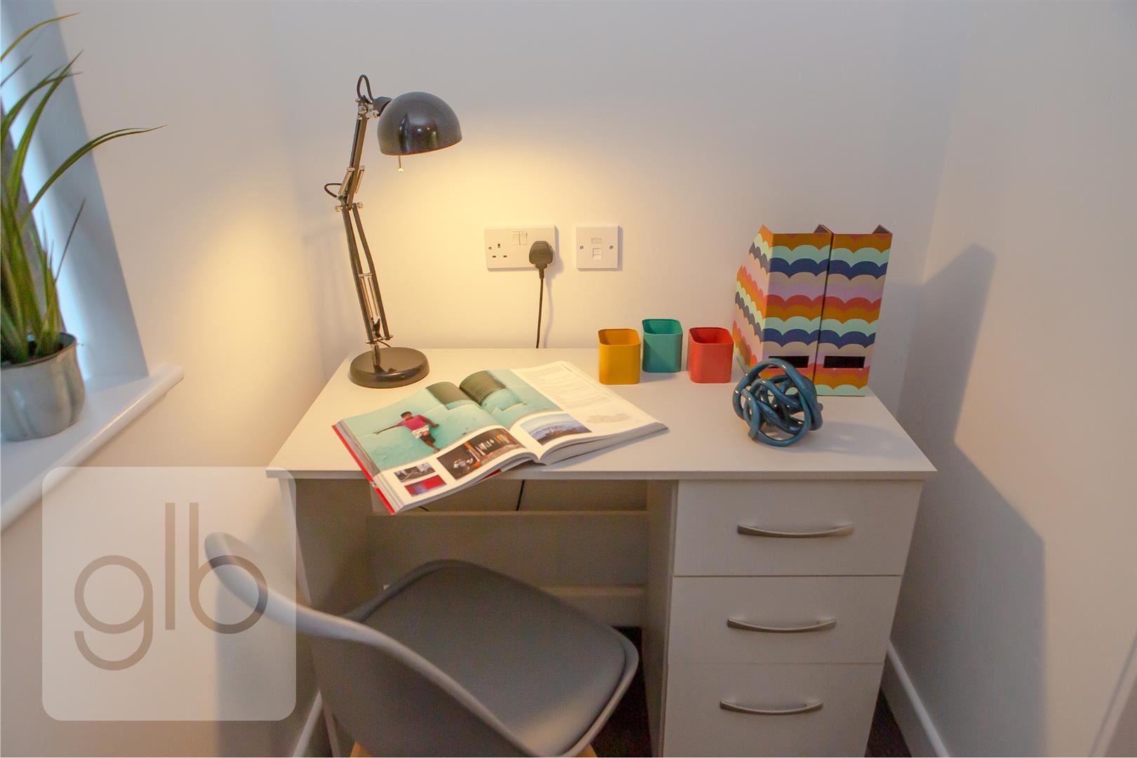 * The bedrooms provide the perfect space for tenants providing them with the privacy of an en-suite shower room, double bedroom, study/work area with desk/chair, shelving, built in closet and TV.